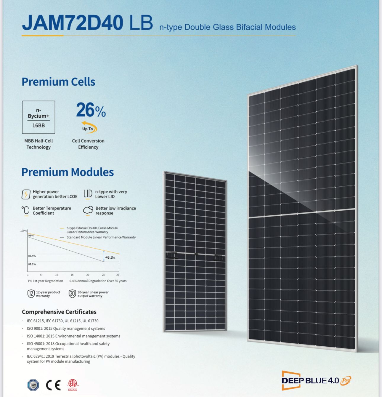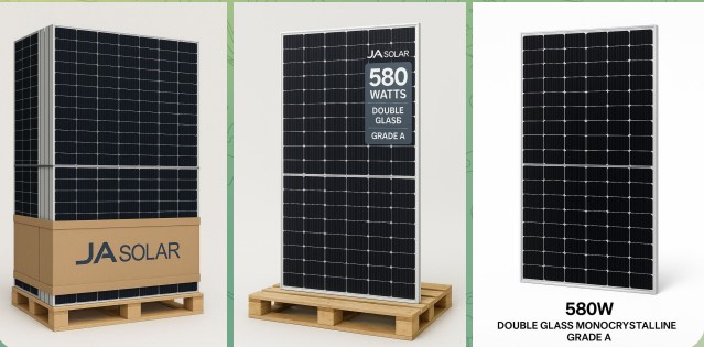 پنل خورشیدی ۵۸۰ وات JA Solar | مدل دابل گلاس | مونو کریستال گرید A